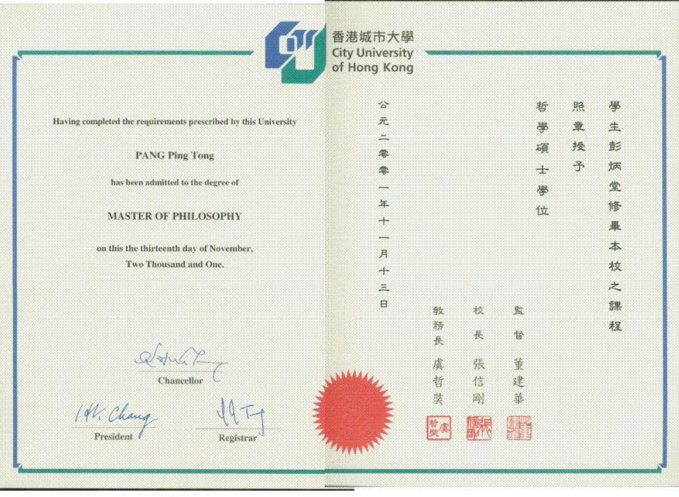 MPhil Degree from City University